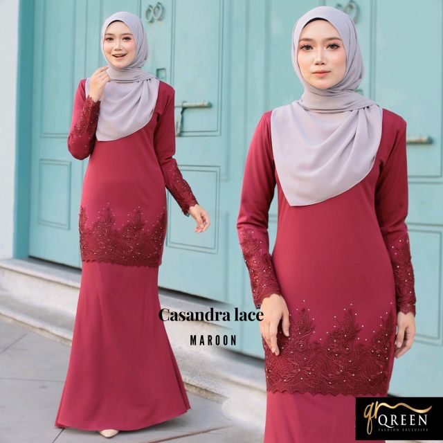 Baju kurung moden lace meleana raya 2021 maroon merah gelap. Clearance sale‼️koleksi baju kurung tema merah maroon mini moden/mini riau/kurung moden/suri blouse by anggun cotton.